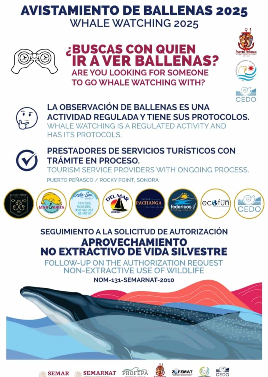 Cabe mencionar que Puerto Peñasco es el único puerto del estado de Sonora que cuenta con el nombramiento como are autorizada para el avistamiento de ballenas por la Semarnat bajo la norma oficial mexicana desde 2020.