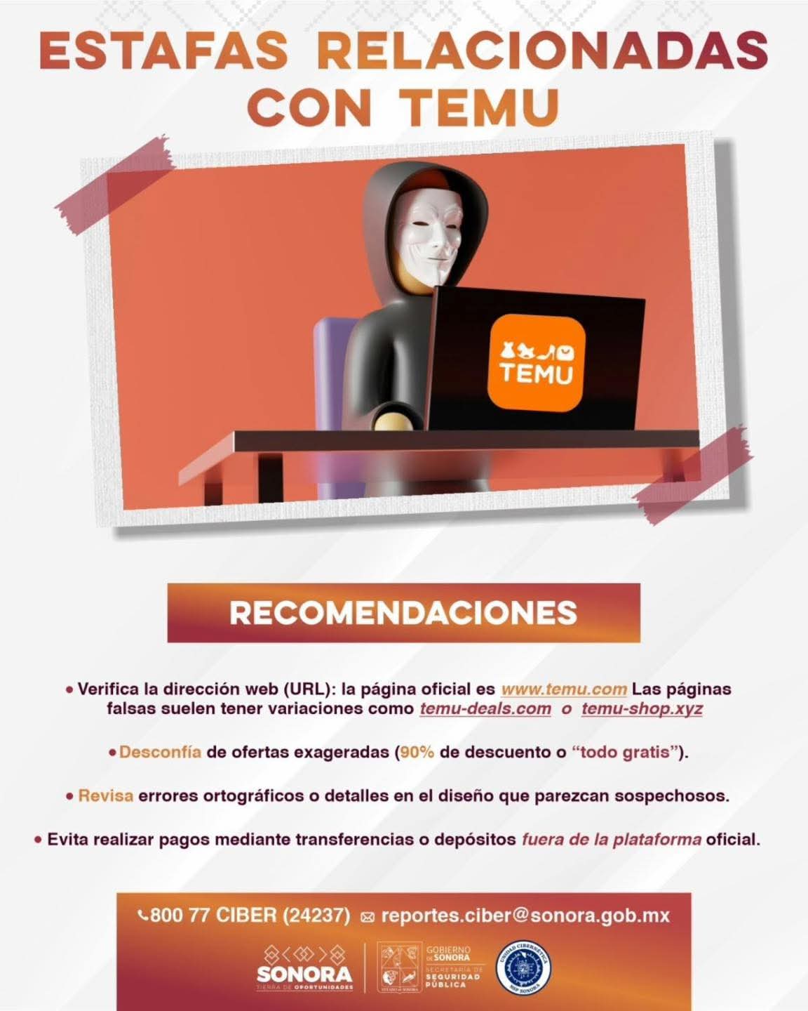 Con el objetivo de prevenir fraudes en línea relacionados con la plataforma de compras Temu, la Secretaría de Seguridad Pública, a través de la Unidad Cibernética del Gobierno de Sonora, informa a la ciudadanía sobre esta nueva modalidad.