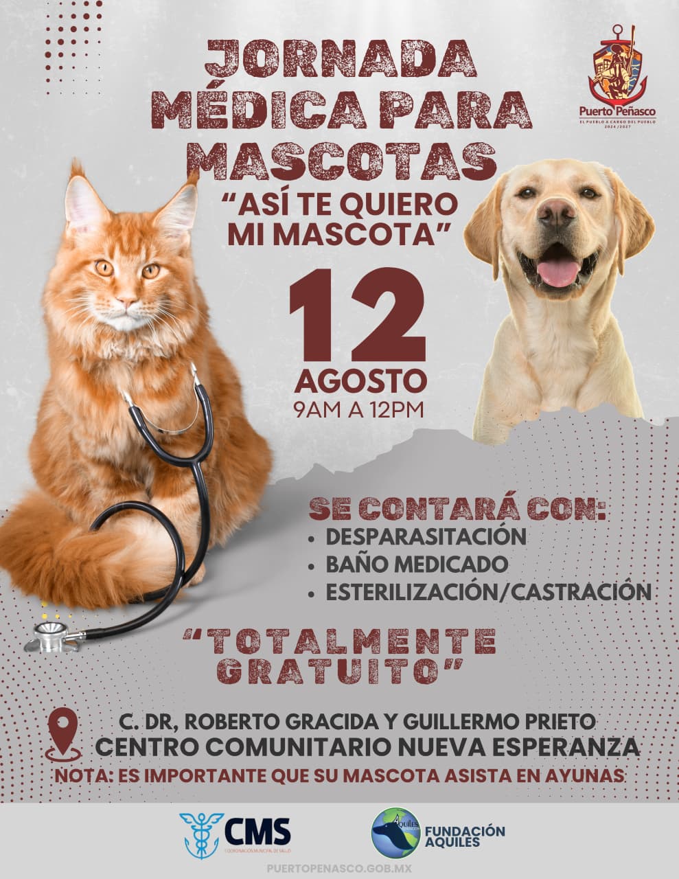 A través de la coordinación municipal de salud el Gobierno Municipal de Puerto Peñasco lanzó una convocatoria para invitar a la ciudadanía a participar en la Jornada Médica Gratuita para Mascotas.